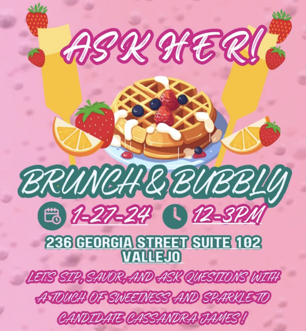 Let's sip, savor and ask questions with a touch of sweetness and sparkle with candidate for Solano County Board of Supervisor, Cassandra.